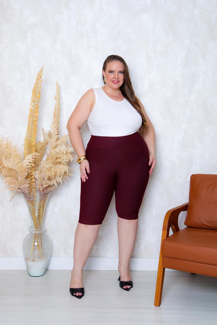 Bermudas plus Malha jeans são muito confortável a cintura e alta o comprimento é até o joelho, tem dois bolsos atrás a qualidade da costura é bem reforçada muito bem costurada.
